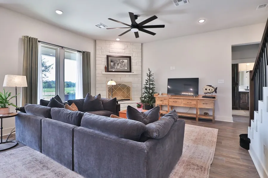 Welcome to this 10-acre ag exempt and no restrictions property! This 2440 sq ft home is made for easy living with a split floorplan, 3 car garage, fiber optic internet, city water and an on-demand tankless water heater. One and a half story. Granite countertops in the kitchen and a large island allows for extra seating. Quartz countertops in all the bathrooms. HUGE 7x4 walk-in shower in the main bathroom that has his/hers sinks, soaking tub, linen cabinet and large closet. You will love the walk-in pantry! Large laundry room with nice storage. The Austin stone fireplace will keep you cozy on those chilly Texas nights. There is an upstairs room that can be a movie room, game room or it can be converted into a bedroom. Easy access to highway 21 and within 30 minutes to Bryan. 20 minutes to Madisonville. This property is being split from a 21 acre tract. Barn was blown down by straight line winds in May, 2025.