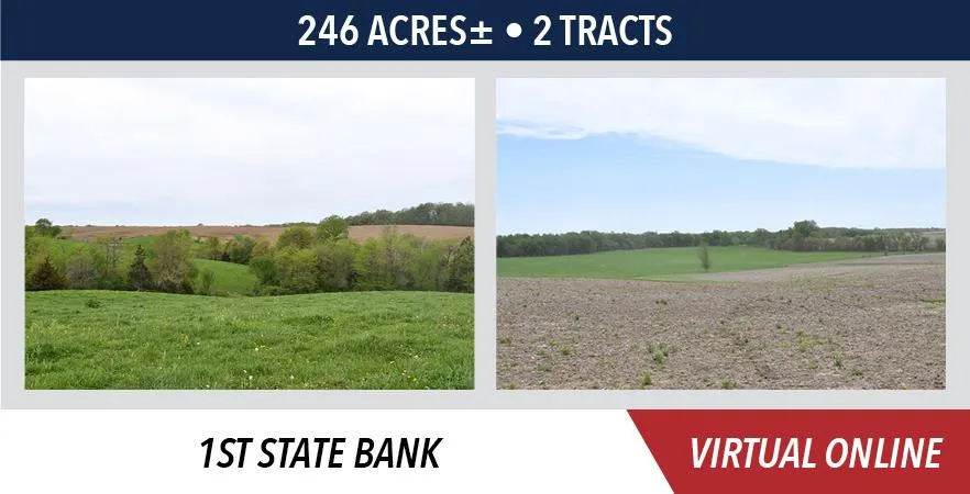 Mark your calendars now for this upcoming Mahaska County, Iowa land auction. Tract 1 offers productive tillable farmland that is improved with several areas of terraces with tile inlets and includes desirable recreational acreage with Middle Creek access. Tract 2 offers productive tillable farmland, improved pastureland and the wooded areas on the parcel feature attractive recreational acreage. This is an auction you will not want to miss!
