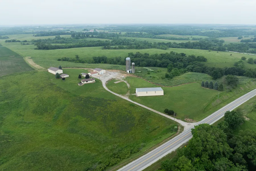 Set on a rural country hilltop, this property offers a unique combination of living space, agricultural infrastructure, and natural features. The one-bedroom (plus one non-conforming bedroom), 2.5-bathroom home is located just above a small pond, providing a peaceful view from the house. Built for practicality, the home is accompanied by a concrete-floor garage and a separate concrete-floor shop nearby, ideal for storage, repairs, or workspace.Two machine sheds, two grain silos, and two additional outbuildings support farming operations, with plenty of space for equipment and materials. The land includes 23 m/l acres of productive cropland and 99 m/l acres enrolled in the Conservation Reserve Program, paying roughly $25,082 per year and expiring in 2027, providing a mix of annual income and long-term land management. Native grasses cover much of the open acreage, while wooded draws creat...