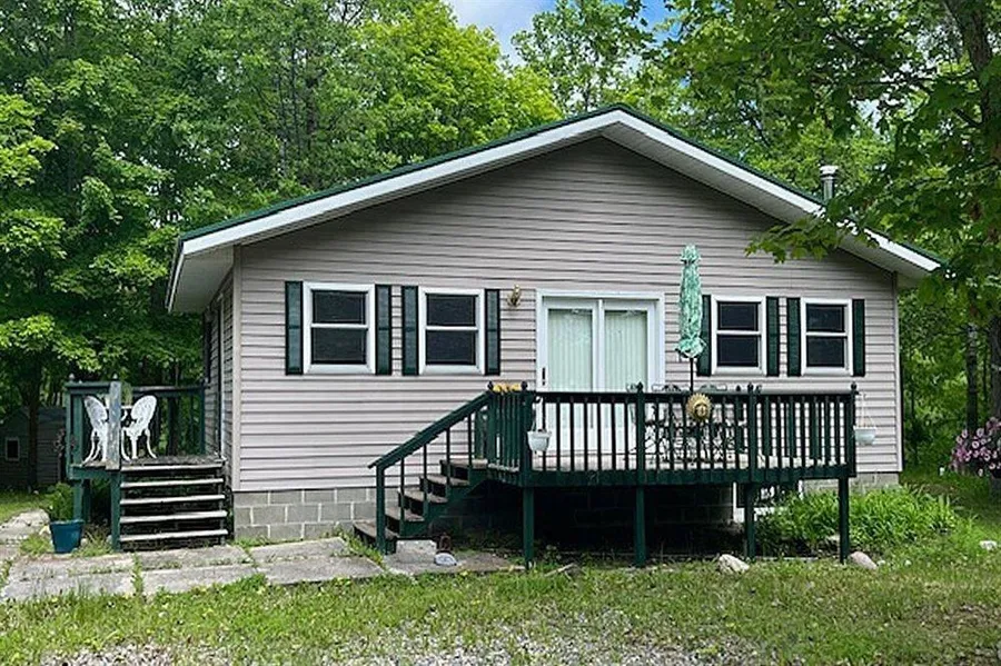 Lake Views! Lake Access! All without lake shore taxes! This attractive north-woods cabin is turnkey ready. Featuring a stunning wood-finished interior and flooring throughout. Together with a spacious maintenance-free garage/storage building, all on an oversized 1+ acre lot with shared lake access in Island Lake White Wind Estates.
