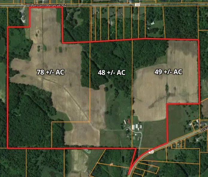 This generational farm has been in the Johnson family since 1938. The property consists of approximately 176 +/- Acres (Tillable & Wooded) with 3 - Single Family Dwellings, Umbauhl Machinery Shed (54x90), Quonset Hut Building (42x78), Pole Building (26x60), 3 Farm Sheds (Milkhouse, Equipment/Tool Shed, Garage) and frontage on both W Reserve Rd and Youngstown-Salem Rd (US-62). The dwellings consist of Original Century Farm House w/ 4 Bed/1Bath w/original woodwork, Modular Home w/ 3Bed/2Bath, and Cape Cod style home w/4 Bed/1Bath that is currently rented out to tenant who helps with farm. All three homes have free gas to them from gas well on property that will transfer to new ownership. Property is offered in its entirety but seller will consider splitting off smaller parcels.