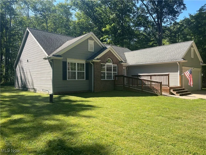 Priced for immediate sale! Just reduced. Owners want this sold before winter! 3 Bedroom, 3 Bath modern ranch built in 2009 on wooded private cul-de-sac. Modern open kitchen with counter to dining and family room with hardwood floors and fireplace. Large rear facing sunroom with slider to large deck. Master bedroom with trayed ceiling with master bath and large walk-in, 2 additional bedrooms with full guest bath. First floor laundry. . 2 car attached garage with overhead storage and water. Finished basement with additional full bath. Newer HVAC. Private wooded lot with garden shed. Extra parking cemented area. Exceptional street surrounded by other custom homes. Convenient to Poland, South Ave and Rt 224. (house is set up with extensive ADA access including elevator in one bedroom easily removed.) Exceptional well designed low maintenance ranch. By order of Trustee
