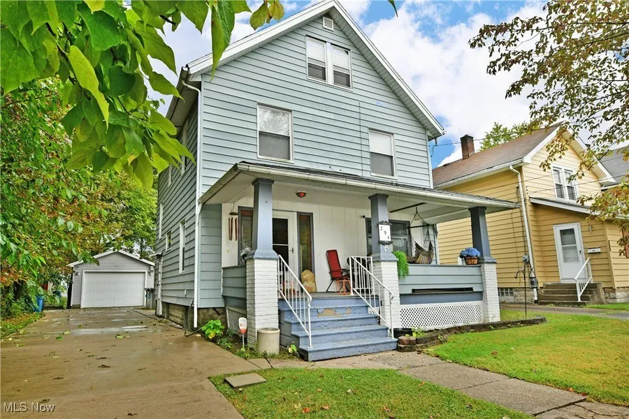 Take in the impressive amount of living space and even bigger potential of this hot-to-market Struthers home! Located just minutes from downtown and offering a host of great features throughout, this residence might be the perfect choice for your needs. Beginning with its instantly attracting exterior looks, bright blue accents mark a fantastic covered front porch where you can take in the warm fall evenings as you watch the leaves change on the colorful surrounding trees. Be ready for summer just the same, as you take full advantage of a backyard pool that joins both an oversized single car garage and a large storage shed, all found at the end of a cement driveway. Through the front door, a spacious living room boasts warm wood paneling and beautiful, stained wood trim work that outlines the entrances. Hardwood styled flooring runs below, spilling into the adjacent dining room with its large picture windows. The generous kitchen provides a host of storage solutions along with an eat-in dining nook at the far end, overlooking the pool. A carpeted stairway rises to find the second-floor bedrooms, along with a brightly lit full bath. The trio of colorful rooms each showcases ample living space and personal closets. Attic storage is found at mid hall, easily finished for third-floor living. Laundry is located at the basement level along with additional storage, a charming half bath, and provisions for a lower shower.