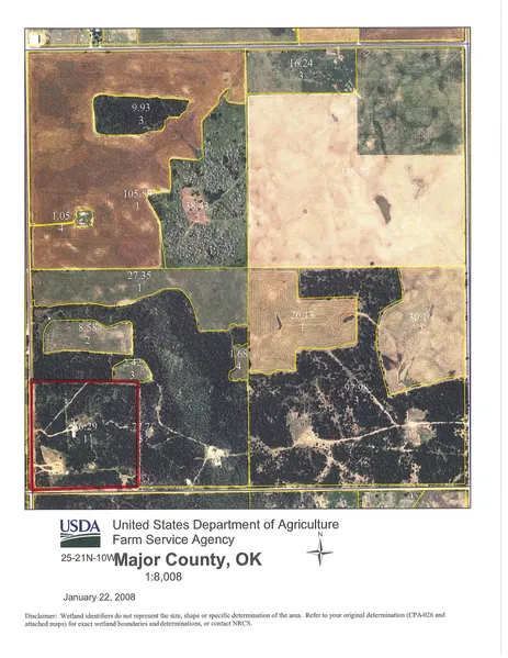 This 40 +/- acres is located 1 miles west of Ames, then 1 mile north, & mile west. It consists of heavy original native timber and grass and is situated in an area that is well known for its abundant population of deer, turkey, and quail. In addition, this land offers a unique setting for rural home sites and is within 25 minutes of Enid, 20 minutes of Fairview, and 10 minutes of Ringwood. Be sure to take a look! Legal: SE/4 SW/4 25-21N-10W., Major Co., OK. Minerals: Do not sell. Taxes: The 2012 taxes were approx. $69.00. The 2013 taxes will be prorated to the day of closing. Possession: Will be given upon payment ...