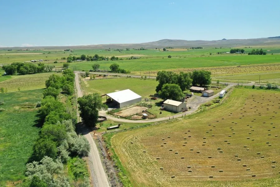 Price reduced! Located on the John Day Highway north of Vale, Oregon near the town-site of Willowcreek. The land consist of 77.57 acres with 64 acres under irrigation. Water comes from the Vale Oregon Irrigation District and is put on via gated pipe. Seller produces high quality grass hay on laser leveled fields. There is year-round water for the livestock and also a pond that catches the run-off water and a pump back system to re-use for irrigation water. Includes a 32x48 shop, a 75x90 steel hay barn, an oversized 2 car garage and an older storage building. The improvements include steel corrals (2 separate sets), Powder River creep feeder, squeeze chute, A.I. chute, hot walker, and breaking corrals. Two tractors and other implements included with sale -