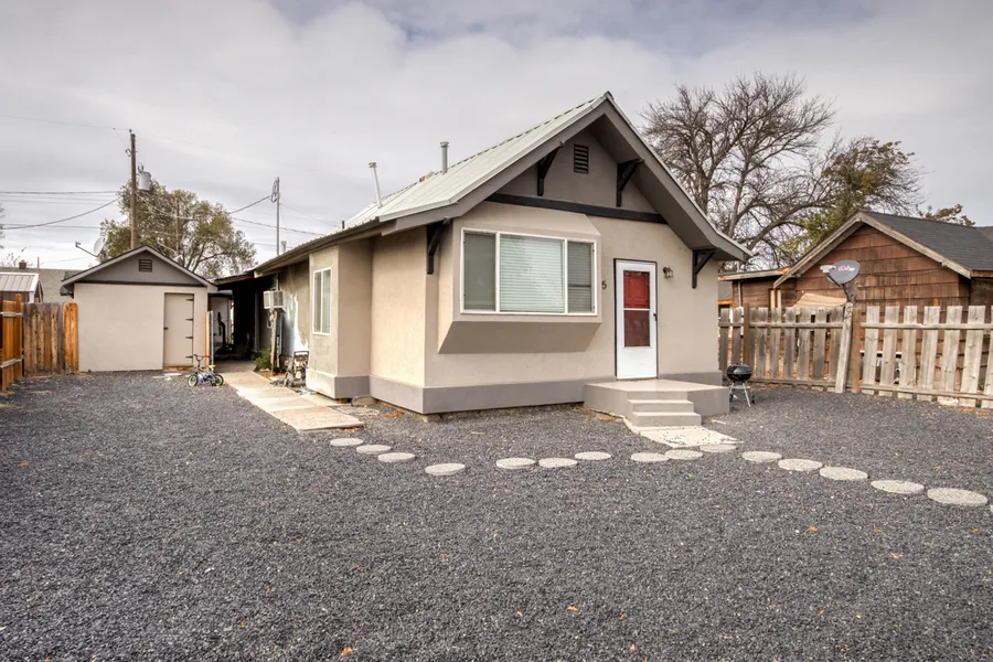 DUPLEX now available along with great rental history. The structure has updated stucco siding, metal roof, insulated storage units with power. 215 features hickory cabinets, tile backsplash, formica countertops, tile flooring throughout, walk-in shower, fixtures and more. 215 1/2 is similar with updated cabinets, formica countertops, tile backsplash, tile bathroom, paint, updated fixtures, tile flooring throughout and more. Covered carport area and additional parking in the back. All appliances included.