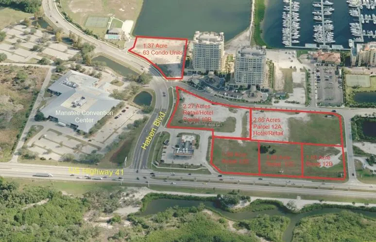 Directly across the street from the Manatee County Convention Center, are these bank owned, pad ready parcels planned for retail, hotel, and office uses. The parcels are located within a marina development and are located on US Highway 41 with easy access to both US 301 and I-75. The parcels