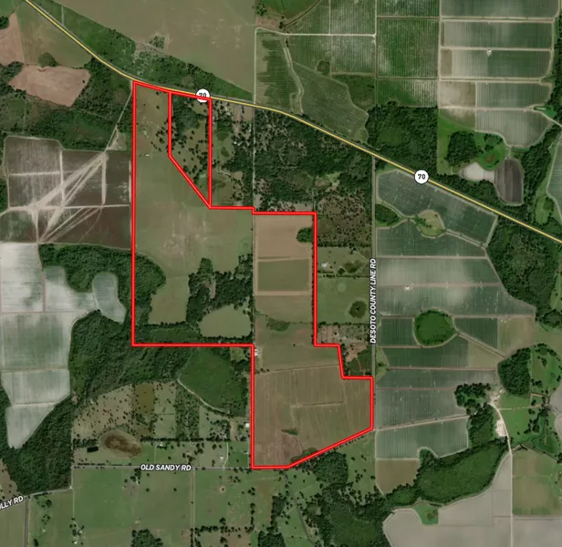 Discover a rare agricultural opportunity in the heart of Myakka City 250 pristine acres ready to realize your farming vision. This expansive property boasts an impressive 1,700 feet of frontage on HWY 70 and an additional 1,050 feet on Old Sandy Road, ensuring excellent access and visibility for a range of agricultural pursuits.