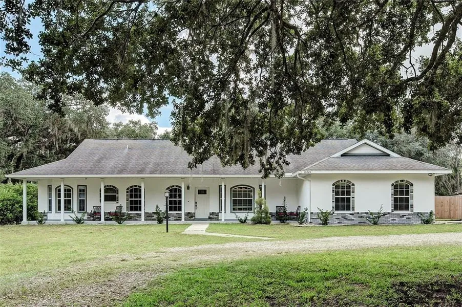 Gorgeous 4 Bed / 2 Bath country style ranch home with a slightly modern touch. Enjoy this beautiful home in a rural setting while only being minutes away from dining and shopping. No HOA or Deed Restrictions make this 2 acre property a wonderful place to park all your recreational toys under the pole barn (36' x 20') or inside the detached garage/workshop (24' x 24') which is equipped with water and electric. Enjoy cooking in your open concept kitchen with newly upgraded Frigidaire Gallery series appliances including a beautiful double convection oven. Perfect for entertaining family and friends for the upcoming holidays. Spacious master bedroom has two closets and the en suite bathroom has an oversized shower and a separate garden tub. There are 3 other large bedrooms and another full bathroom. There is also a bonus area which is perfect for a playroom or home office. There is a formal living room and dining room as well as great room off the kitchen. Off the back of the house you can enjoy your quiet surroundings from your spacious lanai. This property is blanketed by wonderfully established oak trees and not only provides a stunning backdrop to your yard, but also can be home to horses or other animals that you choose. AC system and duct work was redone recently and that combined with the double pane windows will help with lower utility costs. Come see this home before it's too late!