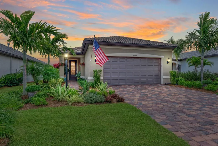 Why wait to build, when you can start living the Florida lifestyle now! This beautiful "Crestview" model sits on a tranquil lake lot in the highly desirable 55+ maintenance-free community, Del Webb Lakewood Ranch. Built in 2020, this "open concept" three-bedroom home is masterfully appointed with an abundance of upgrades including tile floors, crown molding, designer lighting & fans, plantation shutters, extra cabinetry, and upgraded finishes throughout. If you love to cook and entertain this home is ideal for you. The light and bright kitchen offers a gas range, a 9' center prep island, solid wood kitchen cabinets with pull out shelving, s/s appliances, and gorgeous quartz counter tops. The adjacent triple slider allows for easy access to your outdoor oasis. Enjoy entertaining your family & friends in the extended screened-in lanai equipped with a remote control screen and an adjacent p...