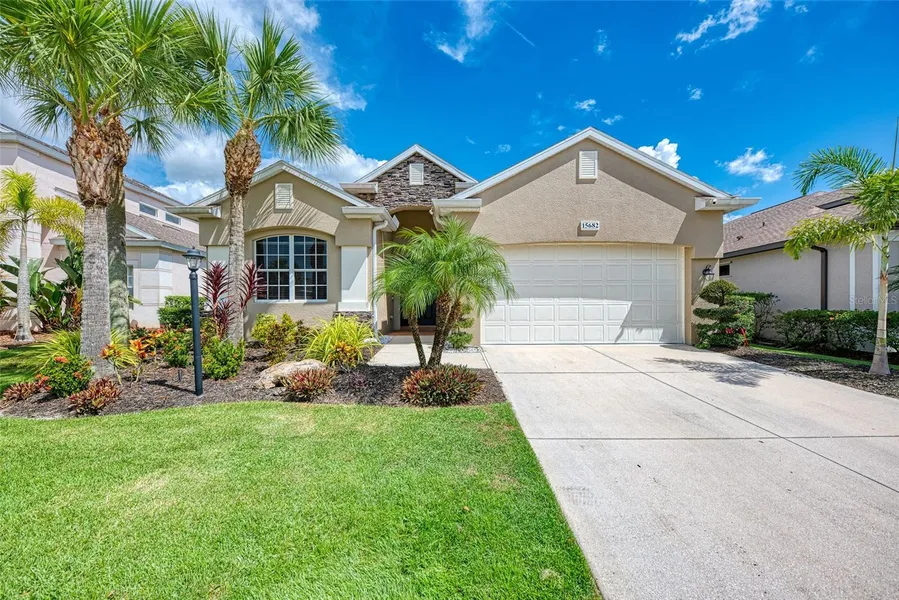 Welcome home to your own piece of paradise in Lakewood Ranch. The first thing to catch your eye as you walk up to this beautiful, turn-key home is the gorgeous stone elevation which adds to the upgraded tropical landscaping. Upon entering the home, you'll notice all of the windows and sliding glass doors that allow natural light to flow through this desirable open concept floor plan. The 10-foot ceilings and 8-foot interior doors also enhance the open feel and flow to the home. Enjoy cooking in your light and bright kitchen, complete with new stainless-steel appliances, slide in gas range, custom pantry door, and tons of storage. The split floor plan is perfect for everyday living and/or entertaining with the guest bedrooms up front, separate master suite and bonus room perfectly situated. The spacious master retreat features a walk-in-closet, dual vanities, a private water closet and a walk-in-shower. Enjoy access to your outdoor living space, complete with a gorgeous saltwater pool, from each area of the home. The saltwater pool was built in 2015 and features an over-sized sun shelf and solar heating. This home truly has it all; impact resistant windows, newly repainted interior and exterior, gutters surrounding entire home, tons of storage, newer AC, custom lighting fixtures and so much more! Your new home will be perfect for enjoying that indoor/outdoor Florida lifestyle you've been looking for. Enjoy easy access to two community parks, one dog park, playgrounds with pavilions, and top-rated schools. Greenbrook Village is close to major roadways, dining, downtown living, and the gorgeous Florida beaches. Don't miss out; schedule your private showing today before it's too late!