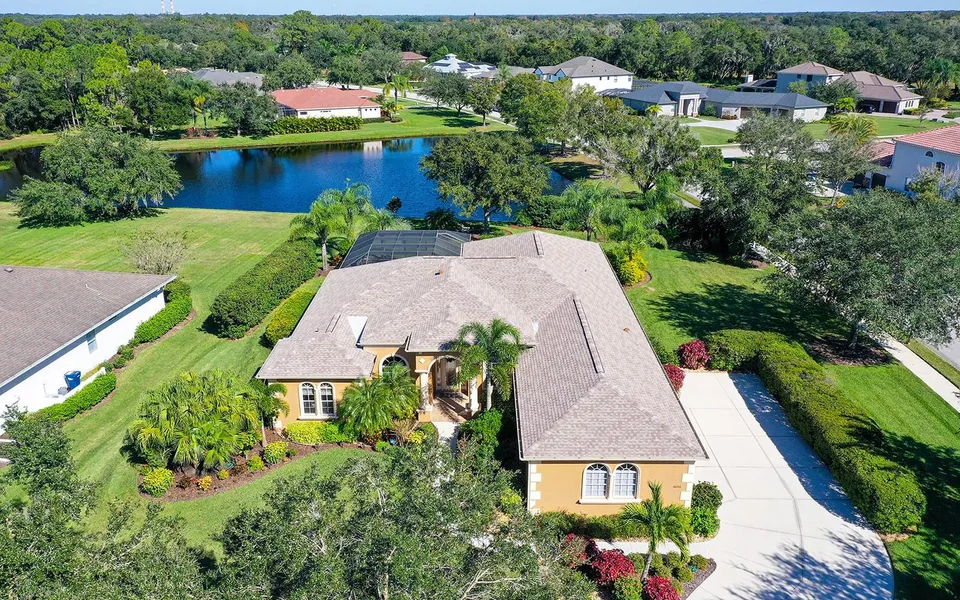 You will be excited when you open the front door to this luxurious property! Everything is in top notch condition. Check out the attachment for the complete list of new items (including a 2021 roof!). Book a tour and take a second to notice the attention to detail everywhere. The walkway is clean, the landscaping is lush. As you open the front door you'll appreciate the 10' and 12' ceilings. There is a seperate but open dining room, office and family room. The kitchen and pantry are large enough to prepare and cook the finest meal. The living room is the right size to fit all of your happy friends and family. The view to the pristine lake is visible from most rooms in the home. There is plenty of outdoor living space to entertain a large crowd and everyone will enjoy the water view from the pool, lanai and backyard. The extra large owner's suite is complete with a private spa like double shower with jacuzzi tub. Want to go outside and throw a football or a frisbee? There is plenty of space on this more than half acre lot. Need extra space in your garage? This one is huge! Oversize 3 car garage with high ceilings and an attic with walk up stairs to store all of that extra stuff you have. The backyard lake is maintained by the HOA and is full of fish so be sure to bring your fishing poles. Close to shopping only 10 miles (17 minutes) to the Ellenton Outlets. Just 13 miles (20 minutes) to the heart of Lakewood Ranch. Twin rivers community is located where the Gamble Creek and Manatee river come together. There is a community fishing dock, kayak launch, playground, basketball court, volley ball court, soccer field and plenty of places to go for a walk or a bike ride. Grab this move in ready home before someone else does! This home is an HG TV show award winner after all! May your mind stay at ease since this home is offered with a one year American Home Shield home warranty.