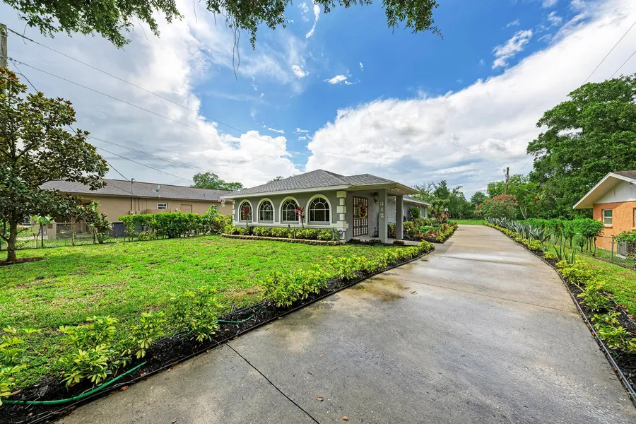 Spacious turnkey-furnished and move-in ready home in the heart of Palmetto. This amazing home offers elegance, style and tranquility all wrapped into one. Landscaped with exotic plants and bushes, you will feel delighted every time you pull into your driveway. As you step inside through the front door, you will find a large Florida room with arched windows allowing an abundance of natural light. Inside this spotless and impeccably designed home, take notice of the many great features including a brand-new AC system, 2,117 square feet of living space, two baths, two-car garage, ceramic tile floors, high ceilings, lighted ceiling fans, split bedroom floor plan, washer, dryer and plenty of space to entertain and relax. The primary bedroom offers dual walk-in closets, en-suite bath with dual sinks, luxurious soaking tub, separate walk-in shower and vanity. The huge kitchen will take your breath away with high ceilings, plenty of cabinet storage, new microwave and refrigerator, recessed lighting and breakfast bar. The property lot is just under a half-acre, allowing for extra parking for your boat, RV, company trucks or to add a swimming pool. No HOA or deed restrictions! No rental restrictions! Behind the home, you can walk to and enjoy the community park. Located only minutes away from tasty restaurants, shopping, hospitals, golfing, fun entertainment and grocery stores. This home has it all. Set up your showing today as this one will not last long.