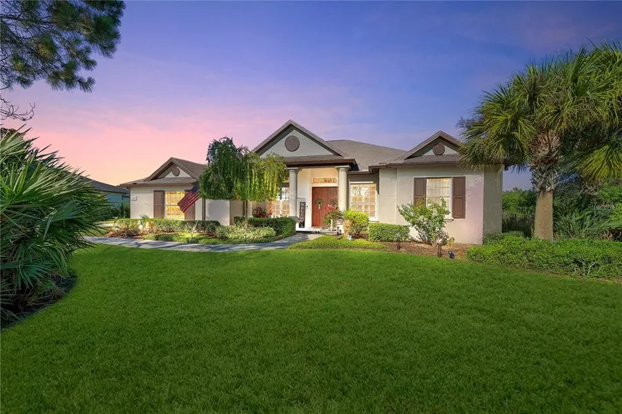 Welcome to your private oasis at the Preserve at Panther Ridge! One of the most sought after locations in East Manatee County offering A rated area schools, walking trails, lakes, tennis court, basketball court, & a new community playground. As you approach this 1.3+ acre estate, a long private driveway bids your entry. Like a well chosen necklace, the natural and lush landscaping adorns this lovely custom home; its jewels are the lake views and preserve beyond. Upon entering through large double doors, slip your shoes off and enjoy the feel of the Sand Dollar Coastal Collection luxury vinyl floors. Relax simply by absorbing the peace and quiet and the scenic views provided through each window. Neutral colors throughout draw your focus on this home's features. Lovely crown moldings, the accent of plantation shutters and volume ceilings throughout, frame the immediate views of the grand o...
