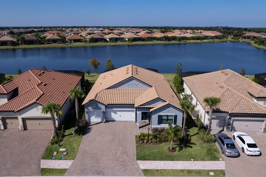 Dreaming of resort-style living in a fabulous location? An enviable life of leisure awaits in this luxurious residence set within the sought-after gated Country Club East, part of the award-winning, master-planned and green-certified Lakewood Ranch community! Imagine coming home to relax on your west-facing screened-in patio and enjoy spectacular sunsets and inspiring lake views. Open and bright, the stunning interior has seamlessly connected gathering areas with abundant natural light and plenty of room for entertaining. Avid cooks will love the well-sized kitchen, butler pantry and walk-in pantry, along with its full complement of modern stainless steel appliances and seating for guests at the center island. Glass sliders in the adjacent dining area and family room provide easy access to the covered patio where you can appreciate a full outdoor kitchen. Show off your skills at the built-in barbecue while visitors take a refreshing dip in the pool and spa. An en-suite bath in the primary bedroom pampers you with a frameless glass shower and dual vanities surrounding a garden-style soaking tub. You have direct access from the master to the laundry room. There are two bedrooms with access to the Jack-and-Jill bath featuring dual sinks and pocket slider for shower. Additional adornments that will wow you include impact windows, crown molding and tray ceilings throughout as well as a craft table area. Top-notch Country Club East amenities include a lap pool and two additional pools, a fitness center, game room, dog park, plus a golf course with dining facilities offering brilliant views of the golf course, a pro shop, putting course, event lawn and a driving range. This incredible home is near The Mall at University Town Center, A-rated schools, a hospital and office parks, not to mention just a short drive from some of the country's best beaches. With unrivaled amenities and amazing locale, this is the cherished Florida lifestyle at its very best. Come take a tour before it's gone for good!