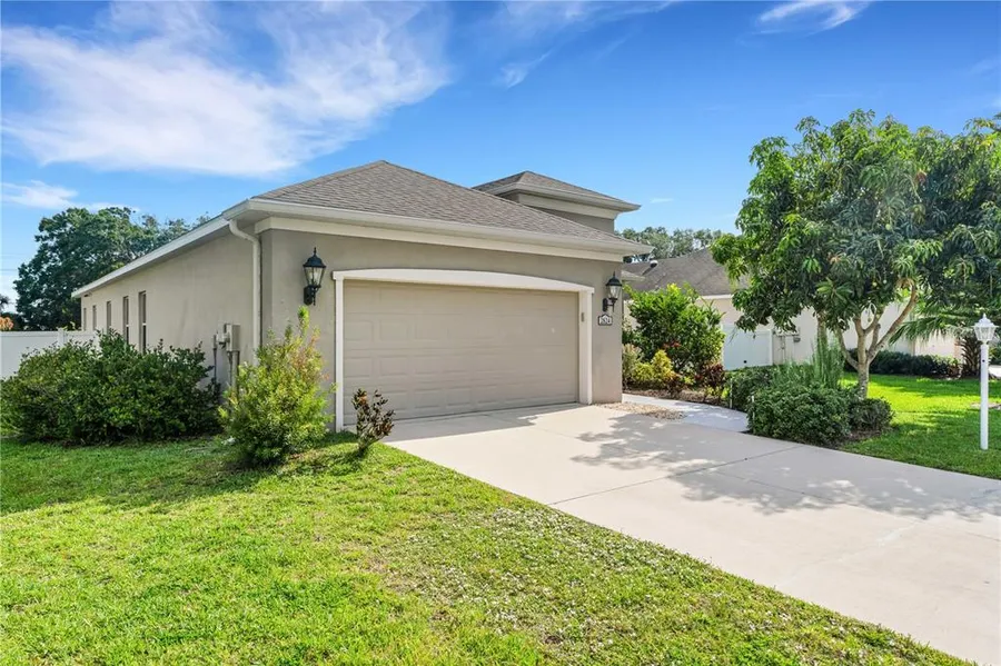 One or more photo(s) has been virtually staged. Look no further! Welcome home to your beautiful 3 bedroom, 2 bathroom home, with a 2 car garage in the very much sought-after subdivision of Sugar Mill Lakes with stunning pond views. Enjoy the Florida lifestyle at its best! The very open floor plan features a media room between the two additional bedrooms. Bring your TV and your game consoles for extra entertainment. The home shows pride of ownership and features elegant upgrades throughout the house including granite countertops, a gourmet kitchen with an upgraded cabinet package, 20X20 tiles, stainless appliances, and tray ceilings. All bedrooms feature wood floors. The master suite features a large walk-in closet with enough space for all your clothes. The ensuite master bathroom has a spacious walk-in shower for easy access. Enjoy extra privacy with a split floor plan for the master suite and the 2 additional bedrooms. The media room can be used as a DEN/Office or even a 4th bedroom to accommodate your preferences. Access your private, covered, and screened lanai through the sliding doors from the main living. Once you step outside you will be carried away by the amazing natural pond views. Sit down, relax, and unwind while you watch Florida wildlife. The backyard features many fruit trees as well as a sprinkler system. The home has a solar exhaust fan in the attic and the solar panel system is paid in full! New AC in 2021. All upgrades were done by the builder. The inside laundry room offers cabinets for extra storage. Sugar Mill Lakes features great amenities such as a park, playground, basketball, and tennis courts. Conveniently located close to US 41, US 301, and I-75 and only minutes from shopping (Ellenton Outlets), St. Petersburg, Downtown Bradenton, Sarasota, and the Gulf Beaches. Enjoy very low HOA fees and no CDD. Solar system savings have been around $100/month! Make this Florida home your dream home and schedule your showing today