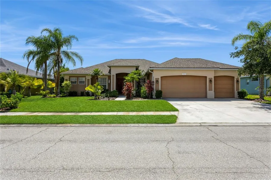 One or more photo(s) has been virtually staged. This Lexington 4 bedroom, 3 full bath home with bonus den feels warm & welcoming from the moment you arrive at the lovely front door entrance. This home features a brand new roof, and the landscape is lush, well-manicured and inviting, making this home an ideal, move in ready property. The home boasts beautiful tile & engineered hardwood flooring, updated light fixtures, neutral interior paint and has plenty of sliding doors that lead out to a large screened in paver patio. The layout of this home is truly tailored for entertaining with numerous areas for dining, including a formal dining space, eat-in kitchen dining area and kitchen counter bar seating. The open feel of this home allows for ease of living and offers two living rooms which provide plenty of square footage for the whole family. The den located at the front of the house would make an excellent home office, playroom or home fitness retreat. The primary suite has 2 large walk in closets, a spacious bathroom with a corner soaking tub and walk in shower and the primary bedroom is generously sized with large windows and a slider door to the patio. The kitchen is well appointed and features a center island, stainless appliances, and stylish tile backsplash. The oversized 3 gar garage will be ideal for storing all your vehicles and has a freshly painted floor. The views of the tranquil pond will be enjoyed from not only the patio but also from your living room. Sunsets over the pond will be an experience to savor from your private and serene patio as you birdwatch and soak in all the beauty this home has to offer. Lexington is a community with low HOA's and great amenities, including a spectacular community pool with children's splash area, playground, tennis courts, and basketball court. There is truly something for everyone to love here so don't hesitate to come visit this gorgeous home today.