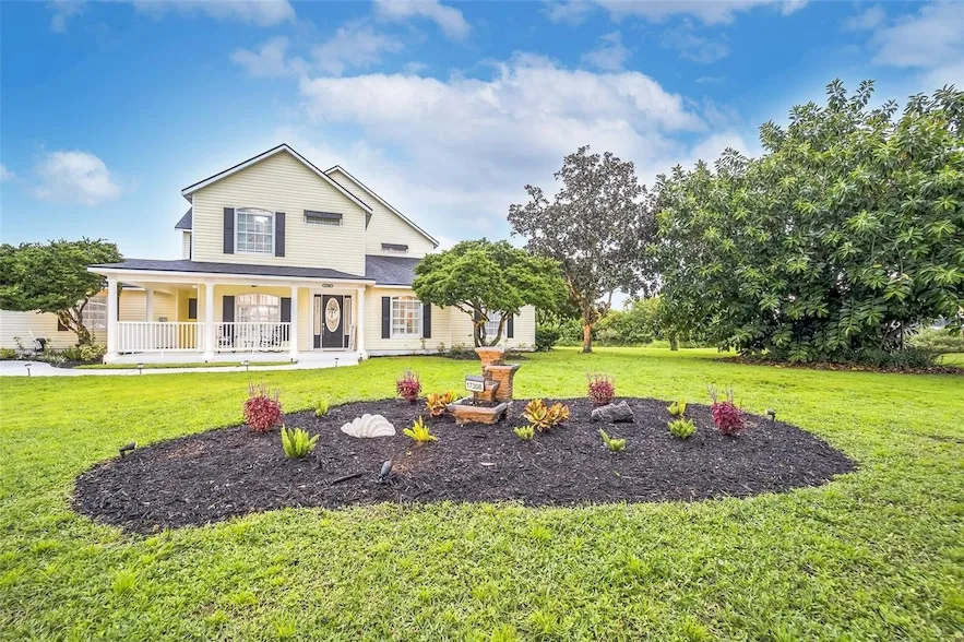 Welcome Home! This charming Carolina Country Home with 3 bed, 3.5 bath located in the highly sought-after Foxbrook neighborhood is sure to catch your eye. The roof was replaced in 2022, new A/C in 2022. This custom-built 2-story home is nestled on just over one acre, backed up to a preserve for privacy, beautifully landscaped with mature trees, and an immaculate lawn. Move past the large covered front porch and enter inside where you will find bright living spaces and comfortable rooms ready for any lifestyle, including a ground-floor master suite, which boasts a large master bathroom with a walk-in shower, including his and hers, separate walk-in closets. This home features multiple upgrades Including 18' Ceiling with crown moldings, woodcraft trim work throughout, new quartz countertops, luxury vinyl plank flooring, marble vanities, oak stairs and railings, pantry, and generous storage areas, including a secret hidden panel to access storage under the stairs, and ceiling fans throughout. Separate dining room, space for a breakfast table in the kitchen, and private office with French doors. Passing through the oversized sliding doors you will find the huge, covered lanai to shade you during our hot summers while keeping you dry if there is a passing shower. Your family can experience resort-style living in the comforts of your home with your very own private pool, with screened-in enclosure to keep out those pesky bugs. There is also a fenced-in area for any four-legged friends or a private vegetable garden. Take your golf cart to the playground with your family, or the basketball court to shoot hoops. Bring your imagination, this home is a must-see.