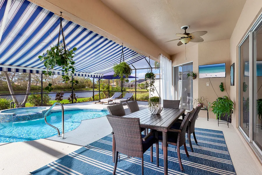In one of the most sought-after areas, this beautifully updated lakefront residence with office offers an unbeatable combination of luxury, convenience and Florida charm. Mere minutes from UTC Mall, Benderson Park, Interstate 75, SRQ Airport and a host of cultural attractions, this home provides easy access to everything you need while maintaining a tranquil, private setting. This home offers a rare assumable mortgage at a low interest rate of 2.375%. As you approach the home, you'll be greeted by lush landscaping, a paver driveway and a tile roof that enhances its stately curb appeal. The three-car garage adds function and style. Step through the double glass doors and you're immediately welcomed by an expansive open floor plan bathed in natural light. Soaring ceilings, a striking stone-accented fireplace, and sweeping views of the lake and pool create a breathtaking first impression. The private backyard retreat is the ultimate escape with exciting new enhancements such as a new pool pump in 2024, new remote controlled retractable awning in 2023, resurfaced and re-tiled pool in 2023, and new pool cage with rust-proof screws in 2023. Relax by the sparkling solar-heated saltwater pool and spa or enjoy the serene water views and stunning sunsets from the spacious, screened lanai. An outdoor shower adds a touch of luxury, making this area ideal for unwinding after a long day. For the home chef, the kitchen is a dream come true. Equipped with new appliances, a convection oven with pots and pans in 2024, a dishwasher in 2024, a microwave in 2023, built-in double ovens and ample pantry storage, it's ideal for preparing meals for family and friends. A cozy breakfast nook with a picture window overlooking the pool offers the ideal spot to start your day. The primary suite is a sanctuary, featuring private pool access, a walk-in closet with custom cabinetry, dual vanities, a garden tub and a walk-in shower with marble floors all designed for maximum comfort and convenience. There are two other bedrooms on opposite side of the home with a newly remodeled shower with a seamless glass door and marble floors. Mote Ranch offers a low-maintenance lifestyle with minimal HOA fees and no CDD fees. Residents enjoy access to a range of community amenities, including a recreation complex with a fishing dock, clubhouse, pool, playground, kayak launch and nature trails. Come experience the best of University Park living where every day feels like a vacation!