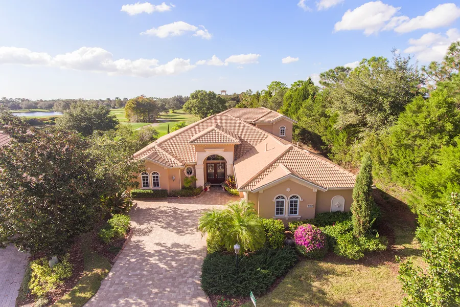 One of the best locations within the gates of Lakewood Ranch Country Club. It has expansive multiple fairway golf views. Magnificent panoramic scenes from sunrise to sunsets. Situated on a cul-de-sac of a dead end street and fronting around about. This privacy of a home has the only practice green directly in its backyard which makes it ideal for active and avid golfers. Only a few steps to the main clubhouse and perfect for walking. As you enter the double door, a dramatic oval tray ceiling with a custom made old world chandelier matching the dining room will catch your discriminating taste. Gibraltar Homes has made this spacious home a very attractive and comfortable residence. The community offers 3 extraordinary 18 hole golf courses designed by Arnold Palmer optional to residents. The luxurious clubhouse has excellent activities for social gatherings, an updated well equipped gym wit...
