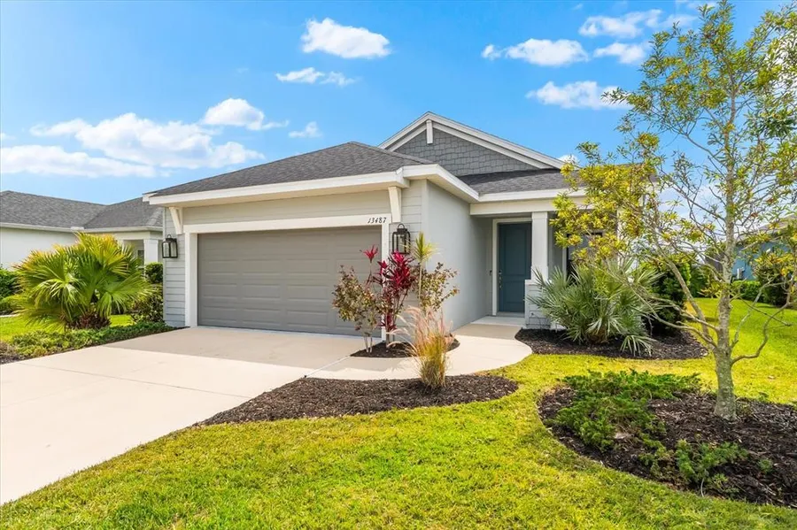 Under contract-accepting backup offers. One or more photo(s) has been virtually staged. Stunning Move-In Ready Home in Canoe Creek - No CDD & Low HOA! Live the Florida dream in this impeccably maintained 3-bedroom, 2-bath Dream model home, complete with a spacious office/den ideally situated at the front of the home for privacy. The open-concept living area with its natural light offers breathtaking pond views, with fully pocketing slider doors leading to a screened-in lanai-perfect for indoor-outdoor living. The kitchen features stainless steel appliances, a large quartz island, and natural gas cooking, making it an entertainer's dream. The primary suite is generously sized, featuring two walk-in closets and an ensuite bath with dual sinks and a walk-in shower. Two secondary bedrooms also with walk-in closets, providing ample storage. A large laundry room adds to the home's convenience. This home has upgraded tile flooring in the main living areas, brand-new carpeting in all bedrooms and the office, and fresh paint throughout, this home is truly move-in ready. Located in the highly sought-after gated community of Canoe Creek in Parrish, residents enjoy resort-style amenities, including a luxurious pool, spa, clubhouse, pickleball courts, dog park, fitness center, yoga studio, and an on-site lifestyle director who organizes various community events and activities. With no CDD fee and low HOA, this exceptional home offers the perfect blend of luxury, comfort, and convenience. Canoe Creek is conveniently located close to Lakewood Ranch, dining, and shopping and has easy access to I-75, Tampa, and St. Pete. Don't miss this opportunity-schedule your private showing today!