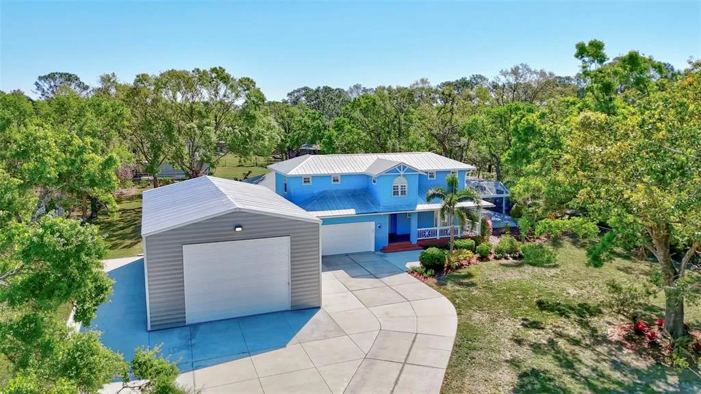 Under contract-accepting backup offers. Discover your dream home with this beautifully updated 5-bedroom, 3-bathroom residence, one of the bedrooms is the perfect flex/office/gym or den space! Nestled on a full 1-acre lot with no HOA or deed restrictions, this property offers endless possibilities for those seeking space, privacy, and flexibility. A major highlight of this property is the 1,500 sq. ft. detached garage/building, ideal for a workshop, extra storage, or a home business. Additionally, there's a climate-controlled shed in the backyard, providing even more functionality. The expansive living areas are perfect for entertaining, while the well-appointed kitchen boasts updated cabinets, countertops, appliances, and ample storage. The bonus room provides additional space for a home office, gym, or playroom. The interior of the home has been freshly painted and new carpet installed upstairs! All windows have custom plantation shutters and all closets have built in closet systems! Outside, the updated pool area features an extended lanai and screened cage, creating the perfect oasis for relaxation and outdoor gatherings. The fully fenced and gated yard offers plenty of room to store a boat, RV, ATVs, or even raise chickens or small animals. Enjoy the freedom of country-style living while still being conveniently located near shopping, dining, and top-rated schools. Properties like this-offering space, privacy, and versatility-are rare. Don't miss out on this incredible opportunity! Schedule your private showing today!