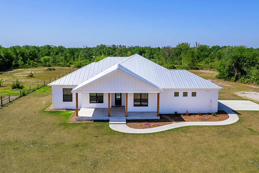 One or more photo(s) has been virtually staged. Buyer Incentive! 2/1 buy down with rates starting as low as 4.99%. Priced to sell - This is practically a brand new home. A refined homestead of quiet luxury and expansive possibility where timeless country living meets modern craftsmanship, all just minutes from the vibrant conveniences of Lakewood Ranch. Between SR 70 and SR 64 off Verna Bethany Road, this private, 5.83-acre estate gracefully marries natural beauty, offering serenity without sacrifice. Built in 2022, this custom four-bedroom, three-bath modern farmhouse invites you into an understated old-world paradise with every modern convenience, masterfully constructed in all concrete block with Hardie board siding, spray foam insulation, and metal roof designed for longevity and ease of maintenance. Impact-rated windows and doors offer peace of mind in every season, while shiplap accents, tongue-and-groove ceilings on front and rear porches, rolling barn doors throughout, and a high quality green luxury vinyl flooring throughout bringing warmth and character to every corner. Enter inside to discover a spacious, open-concept layout anchored by — the heart of the home — a gourmet kitchen crafted for beauty and functionality. Here, the range with a wood hood, quartz countertops, subway tile backsplash, farmhouse sink overlooking the backyard, two-tone custom cabinetry with open shelving, and expansive island are designed with for family and friend gatherings. The butler pantry features a new beverage cooler and is adjacent to the walk-in pantry both with ample open shelving and positioned between the kitchen and dining room. This home also offers something rare, an additional flex room that was crafted to be a dedicated homeschool room with floor-to-ceiling shelving. The primary suite is a tranquil haven at rear of the home with access to the patio, offering a walk-in closet, an extra office/study nook and thoughtfully appointed spa-like experience in the bath featuring dual vanities, a free-standing soaking spa and walk-in shower. Two guest bedrooms feature a Jack and Jill bath layout while the third guest bedroom is tucked in the rear of the home. All bedrooms come with built-in closet systems. Outdoors, the property is a celebration of the land with two fully fenced paddocks for your animals, garden space, private trails and a stocked pond full of bass, catfish and bluegill. Whether enjoying quiet mornings on the front porch beneath tongue-and-groove ceilings or watching the sunset across the wide, open acreage, every inch of this estate is designed for peaceful, purposeful living. With no HOA, no flood insurance required and a high-and-dry lot with no wetlands, you'll enjoy complete freedom to live life your way. This is more than a home — it's a sanctuary, a lifestyle and a legacy in the making. Make a lifetime of memories in the newest offering in the entire area.