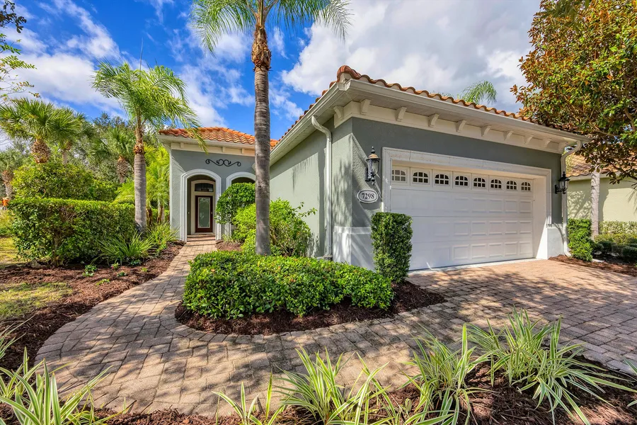Welcome to this beautifully appointed residence in the exclusive gated community of Country Club East in Lakewood Ranch, where timeless design meets modern luxury. This exceptional two-bedroom, two-bath home is on a serene, private homesite surrounded by lush landscaping and tranquil views. A welcoming covered entry leads into an open-concept floor plan with designer lighting that creates an immediate sense of sophistication. The great room, filled with natural light, features expansive sliding glass doors that open to the lanai for seamless indoor-outdoor living. The adjoining dining area provides an intimate setting for gatherings, while the gourmet kitchen is a chef's dream — showcasing custom cabinetry, quartz countertops, a large center island, stainless steel appliances, gas range and walk-in pantry. The private primary suite serves as a retreat with peaceful views, a generous walk-in closet, and a luxurious en-suite bath featuring dual vanities, and walk-in shower. The additional guest suite with full bath offers comfort and privacy for family or visitors. Go outside to the expansive screened lanai, with a large backyard designed for year-round enjoyment. This inviting outdoor space is ideal for relaxation and entertaining, with plenty of room for lounging and enjoying the gentle Florida breeze. Additional features include a two-car garage, tile roof, paver driveway, and a well-appointed laundry room with built-in cabinetry and ample storage. Meticulously maintained and move-in ready, this home blends elegance, comfort and functionality at every turn. In the heart of Lakewood Ranch's premier golf community, residents of Country Club East enjoy resort-style amenities including three community pools, fitness center, clubhouse, park areas, fine dining and optional membership to the Lakewood Ranch Golf & Country Club, featuring championship golf courses, tennis and pickleball courts. Close to top-rated schools, shopping, dining and the Gulf Coast's world-famous beaches, 7298 Belleisle Glen offers a balance of luxury living and Florida lifestyle.