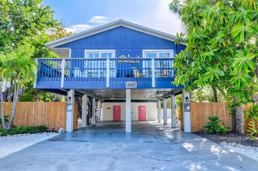 Located on the coveted west side of Gulf Drive just one block from the Gulf, this newly renovated TURNKEY 4-bedroom, 4-bath elevated duplex (WITH DEEDED BOAT SLIP) offers the perfect setup to live in one side and rent out the other for steady income. With no streets to cross to reach the beach, you can enjoy the sound of the waves and salt air daily while generating revenue from a vacation rental next door. Each unit features two bedrooms and two full bathrooms, including a spacious owner's suite that fits a king bed with its own en suite bath, and a guest bedroom ideal for twin beds. The bright, open living areas flow into fully stocked kitchens with updated appliances and dining space, while sliding glass doors lead to private patios that are perfect for relaxing, reading, or enjoying the coastal breeze. Both units have their own ground-level laundry rooms for added convenience whether you're living in or hosting guests. Recent updates include new flooring, paint, trim, and modern finishes throughout, giving each space a fresh coastal feel with a touch of Old Florida charm. The fenced backyard offers privacy and room to add a pool, increasing both personal enjoyment and rental appeal. A nearby boat slip is also included, ideal for your own use or to attract renters seeking waterfront access. The property is being sold fully furnished making it move-in ready and rent-ready from day one. With zoning that allows short-term vacation rentals and a prime location close to Downtown Anna Maria, shopping, dining, nightlife, and a trolley stop across the street, this duplex offers the rare opportunity to live the beach lifestyle while earning income right next door.