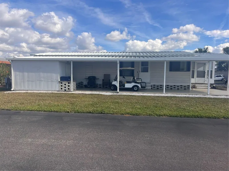 Ready to move into 2 bedroom 2 bath furnished mobile home in a very nice park. Attractive laminate flooring through out for easy care. Open floor plan for the living room, dining room and kitchen. Enclosed lanai with hurricane shutters. Video on premises. Covered carport and work shop/ utility room with washer and dryer and a laundry tub. Westwinds is a very nice community with a large clubhouse and heated community pool. Conveniently located close to shopping , restaurants and I 75. The local air port and Bradenton and Sarasota are close by. Make your appointment to see today.