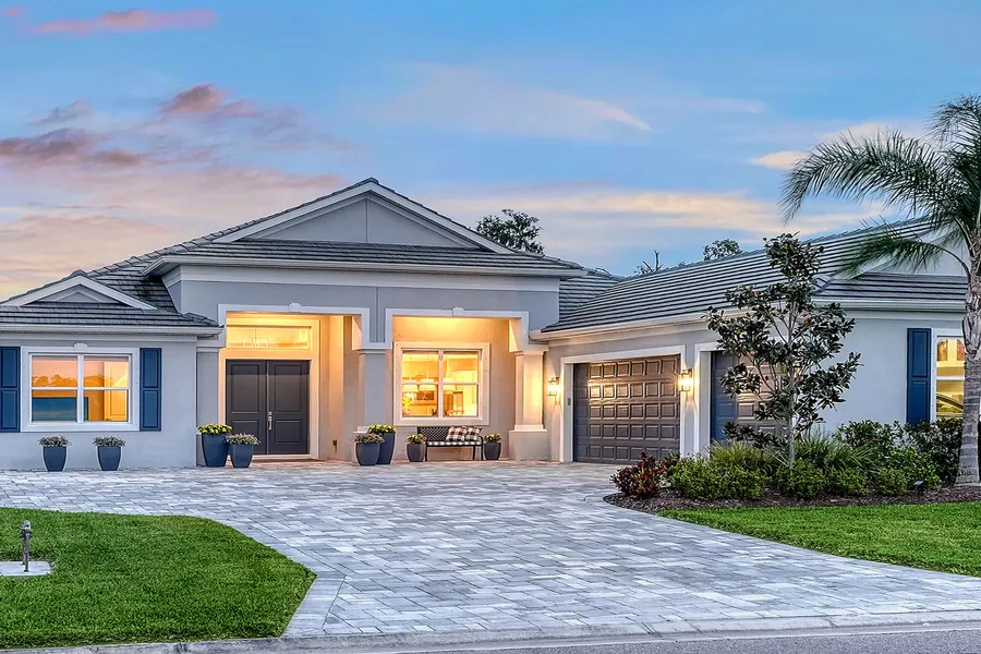 Don't miss your opportunity to own this estate home with custom finishes and private pool in an exclusive area of Twin Rivers! Schedule your private showing today. Enter this home and take in the immediate impact of panoramic water views framed by lush preserves, visible through a clear view screen that extends across the lanai. This exceptional executive residence, in gated community of The Reserve at Twin Rivers with no CDD fees, showcases the sought-after Santa Maria floor plan enhanced by thoughtfully curated custom upgrades. Offering 2,955 square feet of refined living space, the home features three bedrooms, a den, a media room and three-and-a-half baths with a wide-open layout ideal for daily living and entertaining. Designed with seamless indoor-outdoor flow, the home captures full water views from front and rear. The open floor plan boasts a gourmet chef's kitchen showcasing an 18-foot island with Cambria quartz countertops, a 36-inch cooktop, exterior-vented hood, granite sink, soft-close cabinetry, dedicated pots and pans drawers, custom backsplash and premium stainless steel appliances. Designated dining and eat-in kitchen areas offer convenience and elegance all surrounding the spacious great room. The living area includes an expansive tray ceiling and sliding glass doors that open at midpoint, seamlessly connecting the interior to a spacious lanai, an oversized heated saltwater pool with a shelf and a bubbler water feature, all framed by unobstructed scenery. A pool bath is conveniently right off the lanai. The primary suite includes private lanai access, luxury vinyl flooring, tray ceiling and a spa-inspired en-suite bath with a large rain shower, dual sinks, tile extending to the ceiling and upgraded cabinetry along with a huge closet. Highlights include a den or craft room, a one-half bath for guests, a flex/media room, split floor plan, pest defense tubing, 2- foot extended secondary bedrooms, bath and media room, whole-house carbon filtration and water softener, motorized shades window treatments and luxury vinyl throughout. A three-car garage, extended by three feet and finished with epoxy flooring, completes the property's premium features. Please refer to the attached feature sheet for additional features. Conveniently near Interstate 75, shopping, restaurants, parks, boat launches, golf courses, medical services and a farmers market right down the street. Don't miss out on this exceptional home with one of the finest views in the community. Make an appointment today.