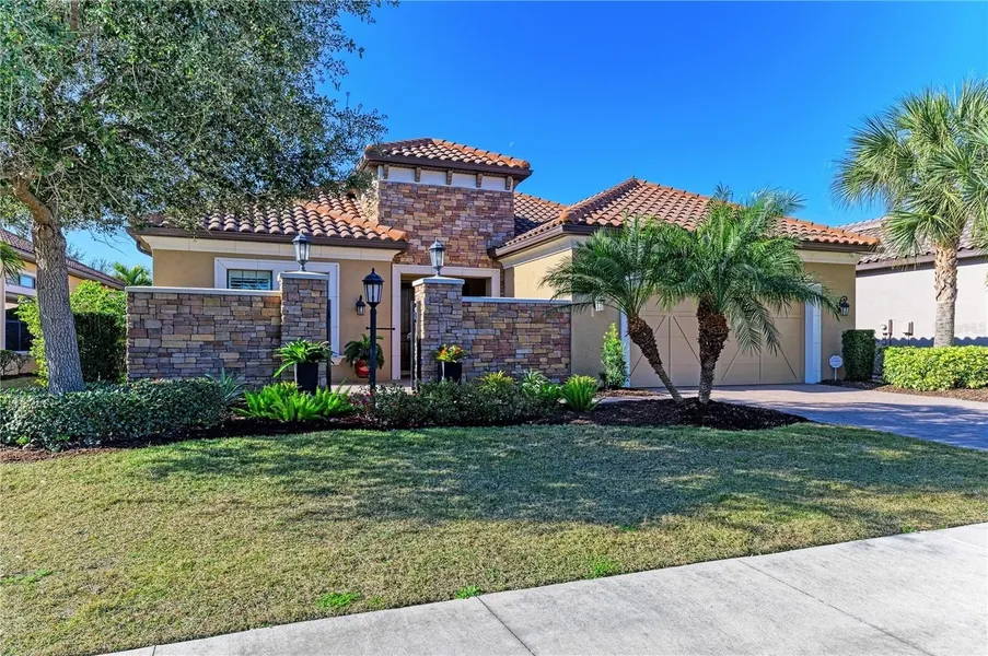 Under contract-accepting backup offers. Experience resort-style living at its finest in the Highly sought after gated community of Esplanade at Lakewood Ranch. This beautifully upgraded Pallazio VII, is perfectly situated on a premium golf course lot with sparkling heated saltwater pool & spa. Located on a quiet cul-de-sac street you will enjoy exceptional privacy with no homes directly across the street. This stunning property features a gated and paved courtyard entry. From the moment you arrive, the home impresses with decorative stacked stone accents, manicured landscaping, and elegant rustic double entry doors. Inside, a welcoming foyer opens to stunning wide-plank engineered hardwood flooring throughout the main living areas and study, with abundant natural light and a desirable open-concept design. At the heart of the home is the spacious gathering area, seamlessly connecting the ...