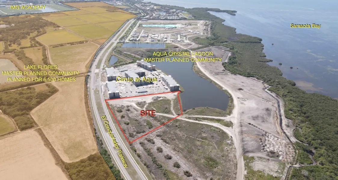 LOCATION DESCRIPTION - The property is located on the south side of El Conquistador Parkway in Bradenton, FL overlooking Sarasota Bay and Longboat Key. Itis within the master planned community known as Aqua immediately west of the new Cirrus at Aqua apartment complex set to open inFall 2022. This site is less than 2.5 miles from Publix, 6.5 miles from Sarasota airport and 9 miles from downtown Sarasota.