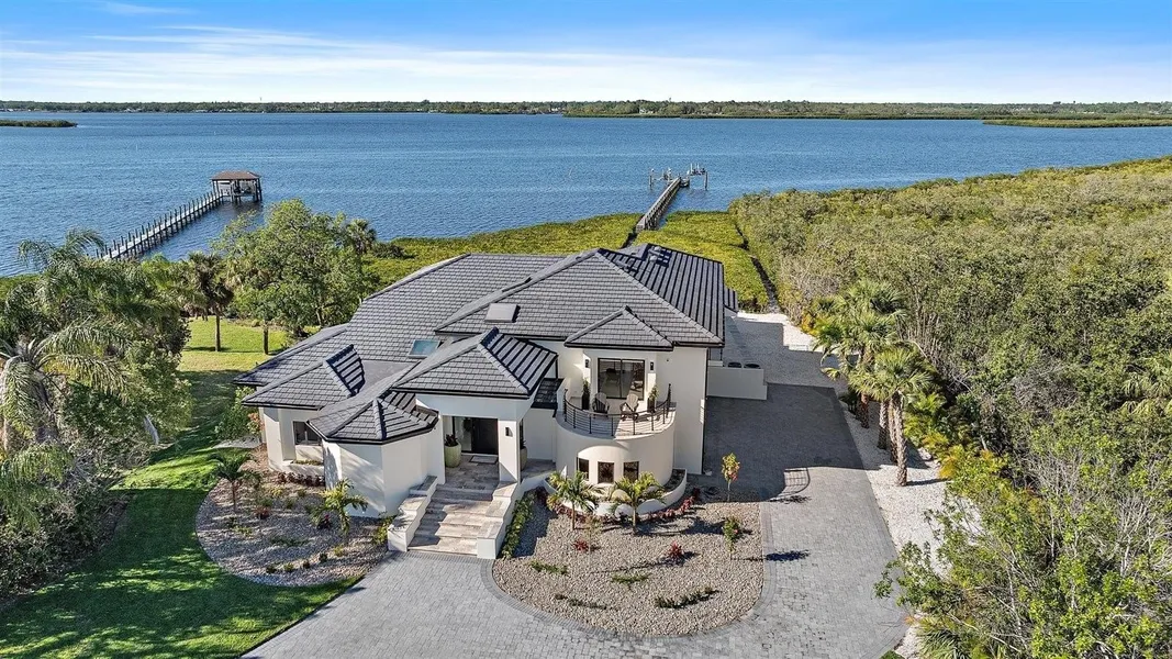 Ultra-Luxury Modern Waterfront Estate in Florida Step into a world of unparalleled luxury and serenity with this exquisitely reimagined waterfront estate, set on over 1.2 private acres. Designed by an internationally acclaimed architect, this masterpiece blends contemporary elegance with cutting-edge innovation, offering breathtaking water views and total privacy—with no neighbors to the east for over four miles. A grand 200+ foot circular driveway, newly paved and enveloped in $500,000 of lush landscaping and exterior upgrades, welcomes you to this hidden retreat. Hurricane-impact windows and a newly refinished concrete roof ensure both security and sleek modern aesthetics. House is very protected from hurricanes by the mangroves. During the last storms the house did not flood due to how the house is situated on the water. A Resort-Style Outdoor Oasis in a well maintained gated community! The completely transformed backyard is an entertainer’s dream. The refinished pool shimmers beside an extended floating sun deck, while a custom pergola with a motorized ceiling and retractable screening houses a high-end outdoor kitchen. A full bath and outdoor shower provides convenience, while a 10,000-pound boat lift accommodates vessels up to 28 feet. A private landing beach allows for effortless paddleboarding and kayaking, framed by manicured mangroves ensuring uninterrupted views. An Interior of Unmatched Elegance Inside, zero grout-line ceramic floors, soaring ceilings, and expansive hurricane-rated windows and sliders showcase sweeping water views. A custom-built, backlit feature wall, designed by master artisans, adds dramatic flair, while slimline AC vents and designer lighting enhance the modern aesthetic. The chef’s kitchen is a showstopper, boasting top-tier appliances, Italian cabinetry, and waterfall-edge quartz countertops. A hidden walk-in pantry with custom shelving elevates functionality. A Master Retreat of Pure Indulgence The primary suite has been reimagined as a private sanctuary, featuring an ultra-luxe spa-inspired bath with an oversized walk-in shower, custom his-and-hers closets, and LED-lit display cabinets for clothing, jewelry, and timepieces. Imported fixtures from across the globe complete this lavish retreat. A Bespoke Second Level Ascend the custom floating staircase, illuminated by soft LED lighting, to a serene balcony lounge overlooking the great room. Outfitted with built-in cabinetry and a coffee bar, it’s an idyllic space to unwind. All guest suites feature custom LED-lit closets and private balconies with stunning views. Reimagined for the Future Completely re-engineered, this estate boasts all-new electrical, plumbing, and HVAC systems, with raised ceilings and expanded square footage to enhance its grandeur. Never affected by storms, this home is as close to new construction as it gets—every inch meticulously curated for luxury, security, and modern elegance. This is Florida waterfront living at its absolute finest.