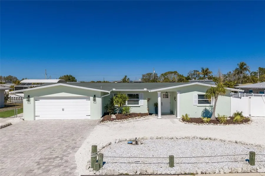 Only 5 photos have been virtually staged with furniture. Welcome to a boaters dream, do not miss out on this fabulous waterfront home. This is luxury waterfront living, just minutes by land or water to the sugar-sand beach's and local coastal dining on Anna Maria Island. Flamingo Cay is a very convenient and lovely waterfront neighborhood positioned right between the island and the mainland, allowing for great access to all that west Bradenton also has to offer including dining , shopping , parks and recreation, golf courses, movie theater's, museums, and much more. This exceptional 3 bedroom 3 bath pool home offers you a completely updated new kitchen, featuring new cabinets, new fixtures, new quartz counter tops, all new appliances, and new flooring. It is hard not to notice the wonderful open floor plan, where the kitchen is in the middle and is perfect for entertaining featuring one large island and a breakfast bar great for food and beverage set up . In addition to the new interior spaces, there is a new roof, new AC , hot water tank, pool pump, and all new fresh paint inside and outside. The primary bedroom also has a large bonus room. This space is large enough for an office, nursery or media room, currently being used as a second extra large walk in closet. It is also large enough to add an island in the middle for more storage, or clothing and a folding area. The home also has a second en-suite bedroom bath convenient with its own exit to the pool and backyard patio perfect for when you have overnight guests. Plenty of parking out front with the circular drive and the 2-car garage provides plenty of space and storage. The backyard offers over 90 feet of water frontage with a brand new seawall and direct access to the inter-coastal where you can experience beautiful sunsets or dining at one of the many waterfront restaurants in just minutes. As far as this lovely home goes, there really is absolutely nothing to do but to bring your boat and start living your best Florida life. Do not let this one slip away or miss out on your opportunity to live on the water.