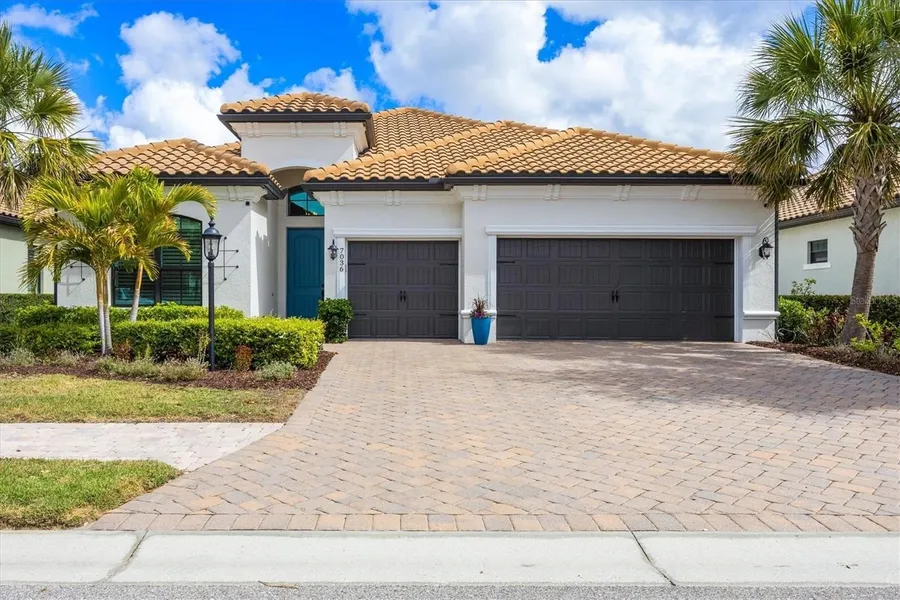 One or more photo(s) has been virtually staged. Welcome to 7036 Whittlebury Trail, an elegant four-bedroom, three-bath residence perfectly positioned within Country Club East, one of the most coveted villages in Lakewood Ranch—the number-one master-planned community in the nation. Set on a tranquil homesite with serene lake views, this beautifully designed home blends refined styling with effortless everyday comfort. Step inside to an open, light-filled layout that immediately captures the natural beauty beyond the lanai. The great room features soaring ceilings, thoughtful architectural details, and sliding glass doors that frame the shimmering lake. Ideal for entertaining, the expansive living space flows seamlessly into the dining area and a contemporary gourmet kitchen with stainless-steel appliances, a generous center island, stone countertops, and abundant cabinetry.