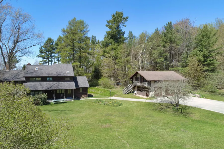 640 ft of private, sandy LAKE MICHIGAN frontage on 28 heavily wooded ACRES! This hidden gem can be found in the remote, exclusive area of Pierport, just S of Arcadia and N of Onekama. Only a few are aware to this special location. Welcome to Northern MI's One-of-a-kind Paradise! Pass by the cherry and apple orchards, the old red barn and wind back on the designated ''Natural Beauty Road'' to this priceless location on the beautiful shore of LK MI. You can be off the grid while minutes from Arcadia Bluffs, the best-of-the-best hiking and biking trails and the peace and quiet you've been dreaming of. Over 3,000 sq ft in this architecturally-designed home. 4 BR, 3.5 BA, with a main-flr master BR and laundry, fireplace, the sweetest bunk house over the det gar, and a timber-framed barn!