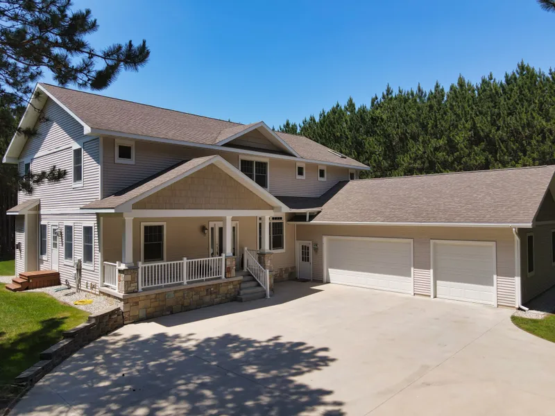 Complete seclusion, nestled in the pines, back off the road and a short drive into the City of Manistee ... not a neighbor in sight. This 5-BR, 4.5-BA home was built in 2007 and sits in the middle of 5 beautiful acres with a circle-drive and a 3-car att gar. 5,000+ sq ft of open living on 3 flrs. Choose from a large master suite on the top flr, with the other bdrms, or a small suite on the main floor for yourself or your guests/in-laws. Granite counter tops throughout, 26-ft vaulted ceilings, office, custom cork wet bar in the lower level, A/C, gas fireplace, hot tub, custom sauna, private sun deck, 2018 hi-eff furnace with heat pump, fenced-in garden, screened gutters, 2 septics, vinyl siding, irrigation syst, tree house, slate oak pool table, fooseball table, Spectrum hi-speed internet. Home also features a home theater system with surround sound on lower and main level, 2 laundry area...