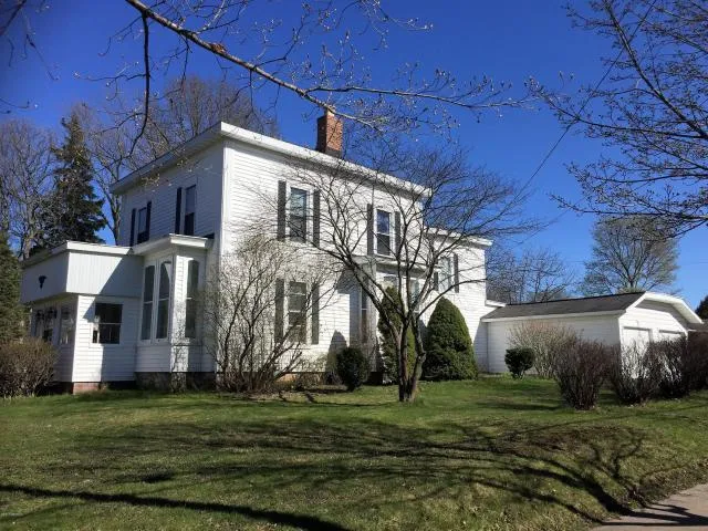 Victorian Italianate. One of the first homes in Manistee, this grand 4-bedroom, 2-bathroom home with an extra-large 2-car attached garage sits on 4 lots, creating an enormous yard and views up the road of Lake Michigan. As you enter the front, enclosed porch and into the foyer, you'll enjoy the open, winding front stairway, thin-plank maple floors, chandeliers, arches, alcoves, original plaster details on the ceiling, a back-stairway and built-in bookshelves in the main-floor bedroom and on the upstairs library landing. You'll also appreciate the large, eat-in kitchen, separate dining room, the main-floor laundry room, the additional large family room on the second floor and the back stairway. And all of the antique furniture is negotiable. All the appliances are included.
