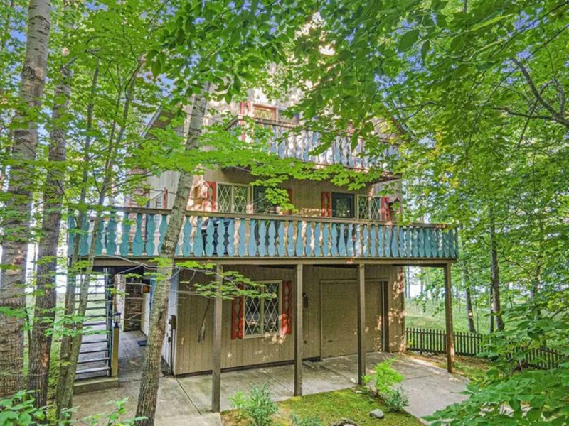 100 feet of medium-high LAKE MICHIGAN frontage with over 2 ACRES, on both sides of the road! You'll definitely feel like you're in Northern Michigan at this beautiful wooded setting and inside this solid, tree-house-like home. 3 BRs + a fun sleeping loft; 2.5 BAs; 3.5 floors of wonderful living space and massive decking all around. You'll love the brick floors and the cut stone fireplace in the lower level, and the sprawling wall of bookshelves and an addt'l stone wood-burning fireplace on the 2nd flr. Laundry rm on the 2nd flr. 1-car attached garage. The land across the road could be used for an additional garage. Doors out to all the decks on every floor. Cement circle driveway. Natural gas heat. The roof was last replaced in 2002; furnace in 2007; exterior was last stained in 2008.