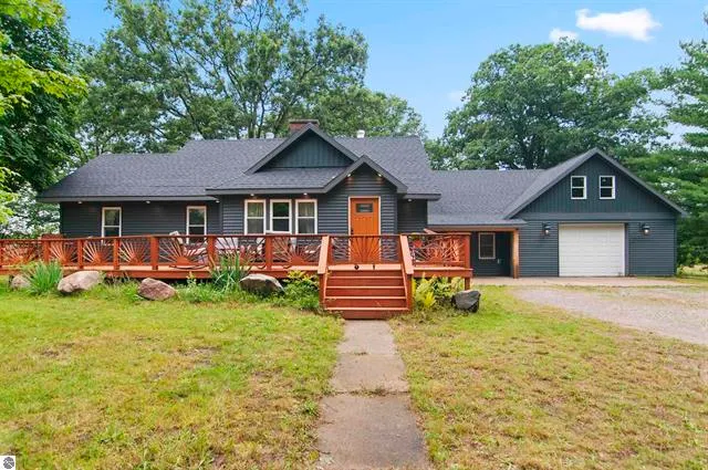 Exquisite 4-bedroom, 2-bathroom executive home with a newly renovated interior and exterior, spanning 3100 sqft of finished luxury.Nestled on a sprawling 13.58-acre lot adorned by the tranquil Bear Wallon Creek meandering through its heart. The property boasts a24x54 attached drive-thru garage, complemented by an expansive 24x70 barn. A charming guest house offers endless potential for your personal touch. Embrace nature's bounty with flourishing apple trees, vibrant blueberry bushes, and a vibrant array of wildlife.Seamlessly connected to the vast Manistee National Forest, an outdoor enthusiast's paradise, with trails, rivers, and a ski resort at your doorstep. Lake Michigan's pristine shores are a mere 25-minute drive away. Discover the epitome of refined living amidst this captivating natural haven. Property is currently subdivided with platted roads. Actually acreage is closer to 18 acres with platted roads. Also Commercial possibilities!