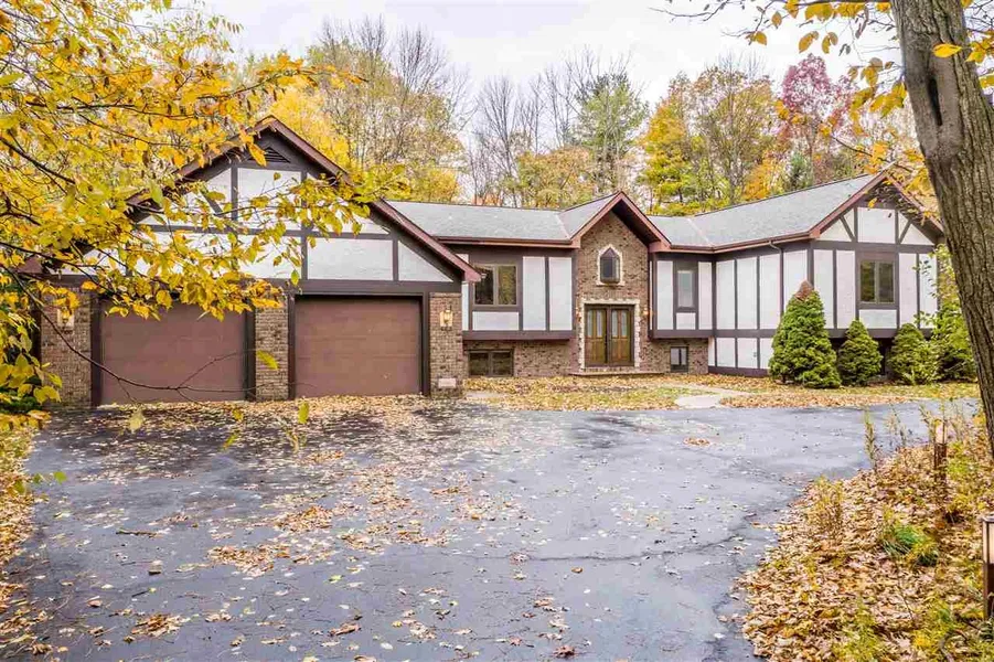 Builder/custom built Tudor-style 4 Bedroom, 3 Bath quad home has over 4176+/- SF AND all on over 2 acres of land. Enter into the timeless foyer and up the stairs with the bulk of the living space on this floor to include the spacious kitchen/dining room combination with tin ceiling and ample amount of storage space and that overlooks the landscaped back yard and down into the solarium that self heats and cools by design. Comfortable family room that is separated with antique pocket doors. Master Suite, 2 additional bedrooms and an office. Downstairs is an impressive stone tri-view fireplace that flows into the rec room and repurposed bar from the Old Manitou Hotel, exercise room, bathroom and 4th BR. Dont forget the giant 4 car garage.