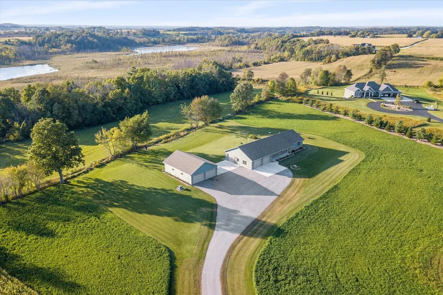 COUNTRY BREEZES, COUNTRY PEACE & QUIET, COUNTRY LIVING is ideal in this newer & sprawling ranch. Spacious rooms throughout including laundry/mudrm, split bedroom plan, tiled floors, 6 panel doors, solid surface counter tops in kitchen including large island, all appliances included. Super spacious dining and opens to big great room w/vaulted ceiling. Patio door out to patio & country views. LL has egress window & stubbed for bathroom, finish how you like! Set back on 5.2 acres w/3 car att w/drains, H&C water & heated! EXTRA detached 30x40 garage. All Kohler fixtures, private paved road