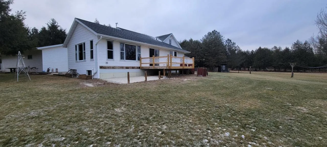 This updated farmhouse, nestled on just over 2 acres, is ready for your personal touches. A huge addition, added 10 years ago, significantly expands the dining and living room, creating a spacious and open atmosphere. The large kitchen offers ample space and direct access to a deck that overlooks the expansive backyard, perfect for outdoor gatherings. The main floor includes a master bedroom and a full bath, providing convenient one-level living. The full basement offers potential for additional bedrooms and a rec room, enhancing the home's versatility. A 2.5-car garage with added shop space provides plenty of room for storage or hobbies. With these fantastic features and the opportunity to add your final touches, this farmhouse comfort and creativity.