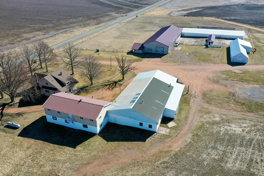 Multifunctional country property on +/-11.45 acres located in northwestern Marathon County. Updated 4+ bedroom, 1 bath home with hickory kitchen, wood burning fireplace and a large covered front porch. Upper level duplex with both units having 2 bedrooms and 1 bathroom over a tuck under garage and a heated workshop with an additional half bath. 50x163 fully insulated shed with 16 foot sidewalls. This building has 3phase power, a heated floor and 50x63 feet of refrigerated space and 50x100 feet of freezer space. There is an attached heated workshop/mechanical room with water. 50x100 multipurpose building with heated workshop, storage and refrigerated space. Additional buildings include a beef shed, calf/heifer shed, concrete feed bunker, concrete yard and cattle shoot. 3 drilled wells serve the property. The stove, refrigerator, dishwasher, microwave, water softener, air compressor and power washer are included in the sale price.