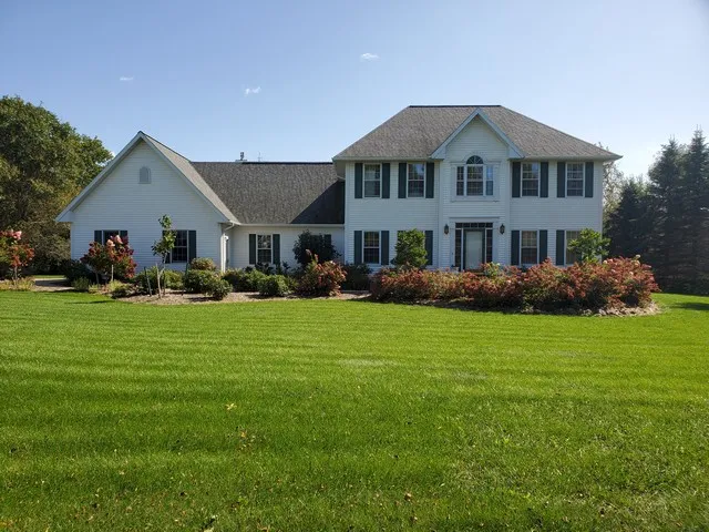 ENJOY THE BENEFITS of this 4-5 BR 3 BA family home situated on 2.41 acres just outside of city limits! Gracious foyer with inlaid Birdseye maple flooring and a beautiful open staircase leading to the second story . Experience the joys of cooking in this efficiently designed kitchen featuring cherry cabinets, granite counters, stovetop, double oven, fridge, dishwasher, island for impromptu meals, walk-in pantry, and convenient family computer area all open to the sunny dinette area. Dinette opens to the two-tiered deck, gazebo, and brick paver fire pit, all ideal for entertaining with family and friends. Dinette also opens to the sun-drenched family room with gas fireplace built for today's casual living. Formal dining room off the kitchen is highlighted by the hand-scraped solid teak floors, crown molding and opens to the formal living room, radiating with hospitality and charm. Room off entry has been used as office/study but can also be a main floor bedroom with a full bath just off the kitchen. Oversized master suite has a nice nook for a reading area, his and hers closets, one a large walk-in, and updated master suite. A suite to spoil you features dual vanity, heated floors with marble inlay, large soaker tub, tile shower, and separate toilet area. Three additional bedrooms, also with teak floors, and a full bath are located on the second story. The redesigned bathroom is ideal for busy mornings, with separate vanities and tile shower/toilet area that can be closed off. Dry and spacious lower level can be further finished to your family needs! Additional features include main floor laundry, white trim, 9 ft. ceilings, raised panel doors and an attached 3 car insulated garage. Property is surrounded by mature trees, beautiful flowering trees, and your own garden. Ideal location, look no further! Call today for your personal showing! *Home Warranty is Included.
