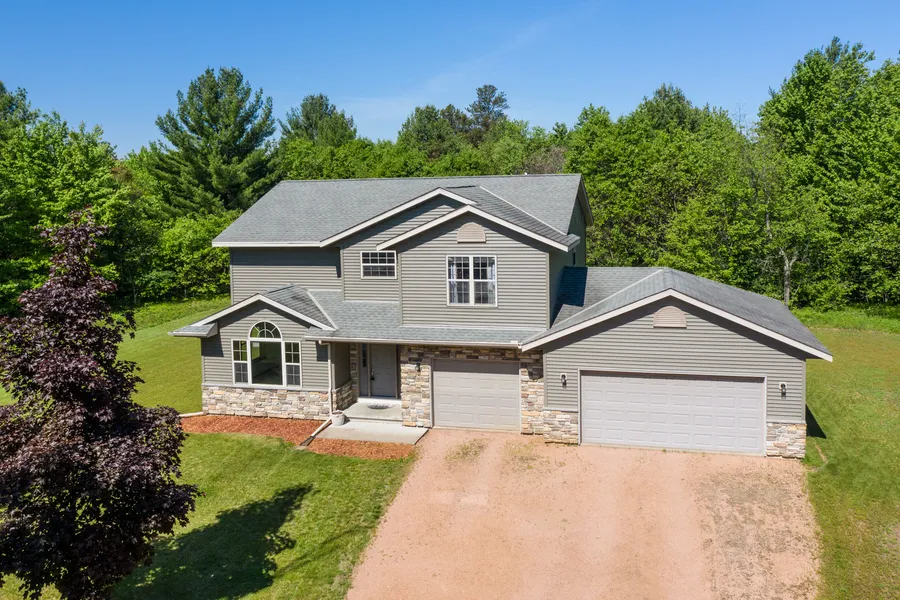 This incredible 2 story home is yours for the taking! There is public water access to Lake Dubay, kitty corner from this home across the street. Youll be sure to enjoy the large acre lot and stunning curb appeal. If you have ever wanted to live near Lake Dubay for a reasonable price, now is your chance. The open concept living space is great between the soaring vaulted ceilings & a 2 way gas fireplace in the living room. This home has large windows, a newly stained deck off the patio door from the dinette, a brand new refrigerator, spacious kitchen island, lots of counter space, beautiful hickory cabinetry throughout the home and a powder room on the main level adjacent to the laundry room where washer and dryer are included. The upper level has a master suite with French entryway doors. The master suite is complete with a walk-in closet and a private three-quarter bath. There are two other bedrooms on the upper level with a bathroom in between that has tile flooring and a full shower tub. The lower level is unfinished with wonderful potential and has space for a family room. The home is complete with new exterior lighting, a three car garage and a wireless pet containment device. Call today to see this great home in a fantastic neighborhood.