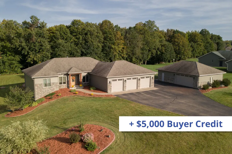 This gorgeous home sits on just under 3 acres in the Town of Ringle. Fishing and kayaking fans will LOVE the access to the Eau Claire River waterfront right from the property! The home has absolutely beautiful curb appeal with well-maintained landscaping surround, brick and vinyl siding, and the spacious driveway that connects the large detached garage. Along with fitting 3 additional cars, the extra garage is also heated and has a workbench and shelving providing a great place to set up your workshop! There is a in-ground pet fence installed along the entire perimeter of the yard. The welcoming entryway opens up to the chandelier lit dining area and the home office that has elegant frosted French pocket doors. Tall vaulted ceilings connect the open concept living room and kitchen. There is a cozy wood burning fireplace in the living room while the kitchen boasts beautiful maple cabinets and stainless appliances. You'll enjoy the main floor laundry room that has the newer washer/dryer as well as cabinets for storage, a utility sink and an extra refrigerator. All the wood flooring on the main level has been re-done. The desirable master suite creates a luxury lifestyle with sliding patio door to the back deck, a private bathroom, and a large walk-in closet. Entertainment is made EASY with the amazing finished lower level that has a carpeted family area with a gas fireplace on one side and a decked out wet bar and pool table on the other side (Harley Davidson chairs not included). In addition, there are also additional bedrooms (one with a large walk-in closet), a work shop with a work bench and cabinets, walkout to the lower concrete patio and basement access to the garage. One of the many highlights of this home is the backyard that has been updated with a beautiful maintenance free composite deck featuring a built-in 8-10 person hot tub and a concrete patio with an adjacent fire pit. All of which you can look out into the partially wooded backyard. There have been trails made through the woods that lead you to the Eau Claire river. NOTE: Sellers are leaving all extra trim, tiles, touch-up paint along with a $5,000 flooring credit.