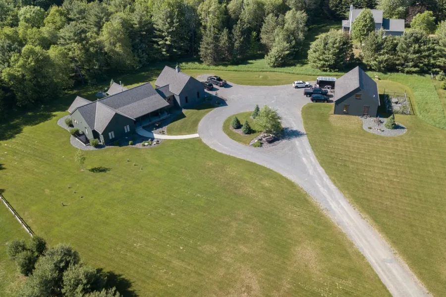 Enjoy this 5 year old custom built home by Hall Builders that offers close to 5200 sq. ft. & nearly 3 acres on the Eau Claire River. Enjoy Kayaking/tubing right from your own home! This circle drive offers a great area to 4-wheel while being close to snowmobile trails! Store all your toys in theoutbuilding complete with 220 volt outlet, a bathroom, 15x13 loft & can be turned into another living space for a 24x30 mother-in-law suitecomplete with a 9' garage door & 15x30 parking space. The cedar siding is tastefully painted on this Farmhouse style home with its large frontporch, weathered barn look garage complete with a weathermane on its chimney over the 50 year shingles & a classic stone wall on theextremely large mudroom between the house & garage. Don't let the country exterior fool you because this high end home has Triple PanePella windows that open for easy cleaning, are extremely energy efficient & have blinds inside! The Amish barn wood beams soar through thevaulted ceiling next to the floor-to-ceiling stone gas fireplace & wall of windows with patio door. The engineered hand scraped Pecan Hickory hardwood floors run from the living room into the formal dining room with a built incabinet & granite countertop. The Pella windows in the dining room can open to easily insert blinds in-between the glass. Thekitchen has a Sub-Zero refrigerator that keeps groceries fresher longer with a lifetime warranty. There is a Wolf gas stove withventing to the exterior, tile backsplash, farmhouse sink, granite countertop on the kitchen island, soft close drawers & doors on theknotty Elder Featherstone cabinets with under cabinet lighting & a drawer microwave to free up the countertops. The kitchen alsoincludes a built in desk & Luxury Vinyl Tile underfoot. Unique cork floor is in the 4 season den which absorbs moisture & sound,complete with a full brick accent wall, sliding barn door, gas fireplace, cathedral ceiling & patio door that opens to the paver patiowith a custom stone wall & accent lighting. There is a concrete pad under the patio to ensure the patio remains level along withingress/egress drain ports throughout & around the property for proper drainage in the already sandy soil. All patio furniture isincluded. The master suite offers cathedral ceilings(wired for a ceiling fan), a sitting area & a workout spot near another door out to aseparate concrete pad where an outlet & plumbing are ready for a hot tub. The master suite offers a walk-in closet & a 2nd closet forhim and her. The lovely master bath provides tile floor, a soaking tub near a barn board shelf & barn wood accent trim above thewindow. The home has 4 infrared automatic vent fans to provide continual air flow. The second bedroom on the main floor has anensuite complete with a tile walk-through shower, rainfall showerhead, shower wand, glass wall & lovely tile accents on the back ofthe sink. The builder is willing to customize the home to meet the buyer's needs. The incredibly large mudroom offers an abundanceof cabinet storage, countertops, an additional refrigerator, a sink, washer, dryer, cubbies, a hideaway ironing board & a separateroom for the overflow of coats, shoes, pantry items and more! You will dance in this space when you see the amount of room thisarea has to offer. The attached 2+ car insulated, drywalled and painted garage has hot/cold water hookups & is stubbed with a gasline overhead to hook up a garage heater to keep your vehicles toasty. There is a kennel with a dog door in & out of the garage.The lower level offers 3 additional bedrooms with egress windows, a family room, dry bar area with barn wood accent wall, full bath,toy room, storage room complete with a mini concrete wall by the sump pump for added protection. The mechanical room hasadditional storage space along with underground sprinkler lines that are ready to be run. A unique feature in the largest lower levelbedroom, connected to the full bath, is the swinging wall that can open & close on hinges if one would like to practice archery in thelong cork floor hallway. There are red lights stationed by each hall doorway to provide an alert if one is target practicing. Thishinged wall can be made into a permanent wall. Enjoy the balance between country & subdivision with a few homes on this cul desac street, yet offering wooded privacy along with high speed Charter/Spectrum internet to allow you to work from home! Yourmodern farmhouse awaits!