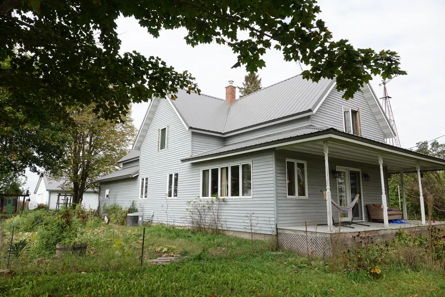 This renovated 2-story farmhouse features 4 bedrooms and 3 bathrooms and is situated on 14.5 acres. The home offers plenty of space which includes a 30x40 addition in 2015. Many new upgrades include new laminate flooring that has been added to the charming kitchen and lower bedroom area, oak cabinetry and pantry area, crown molding and a patio door that leads out to the wrap around porch. The family room addition features a pellet stove and another patio door. The large main level master bedroom has a private bathroom and a walk-in closet. There is a 20x40' horse barn with 5 box stalls with a fenced area for large animals. A one-year-old mound system services the house. The 3 car detached garage has new shingles from 2020.